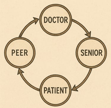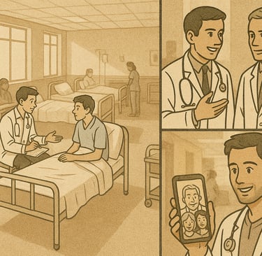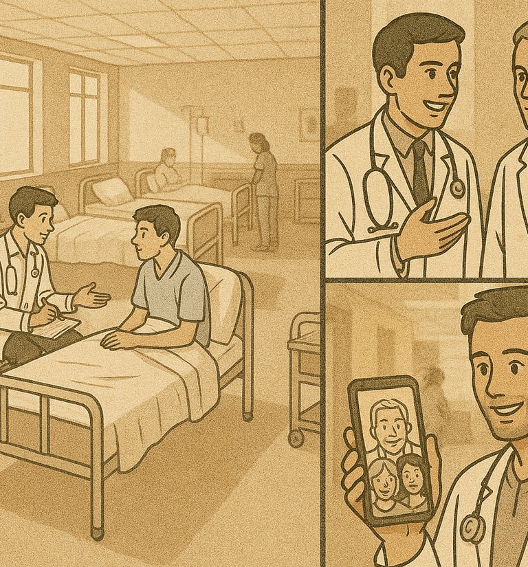 Once upon a time in the bustling corridors of a medical college hospital, four friends — Aisha, Rohan, Meera, and Vikram — began their first clinical posting. One morning, a worried mother brought her child with severe abdominal pain. The senior scolded the group for confusion in presenting the case. Rohan felt hurt, Meera tried to defend, and Aisha quietly stepped forward, calming both the mother and the team. She gently explained the delay, assured the mother, and helped Vikram re‑examine the child.